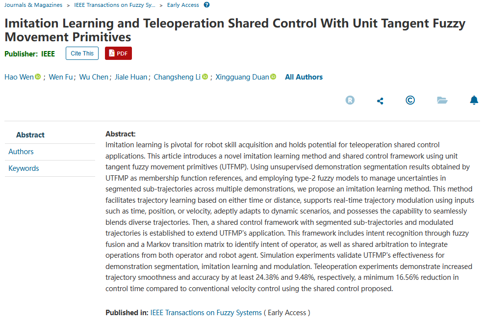• 北理工太阳集团城娱8722医疗机器人团队在机器人技能学习及共享控制领域取得新进展