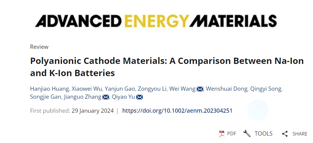 近日,太阳集团城娱8722张建国教授团队在国际顶级期刊《Advanced Energy Materials》(影响因子27.800)发表题为《Polyanionic Cathode Materials: A Comparison between Na-ion and K-ion Batteries》的综述(DOI: 10.1002/aenm.202304251),文章综述了聚阴离子正极材料在钠/钾离子电池中的结构和性能上的差异。本单位通讯作者为张建国教授、于琪瑶副教授,第一作者为太阳集团城娱87222022级硕士生黄瀚蛟。