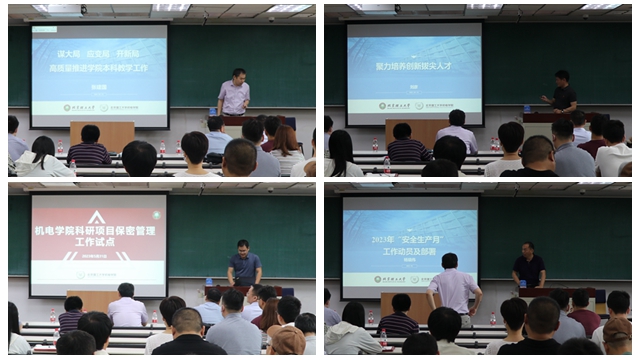结合近期重点工作,副院长张建国系统介绍了本科人才培养竞争性任务体系,对新一轮本科教学评估工作进行了部署安排。副院长黄广炎对科研项目保密管理试点工作就行了系统介绍,强调切实增强保密意识,筑牢保密安全防线。副院长刘彦全面总结了创新拔尖人才培养时代要求和思路举措,对研究生竞争性指标进行了解读。副院长杨瑞伟详细分析了学院安全生产形势,对即将到来的安全生产月进行工作动员部署。