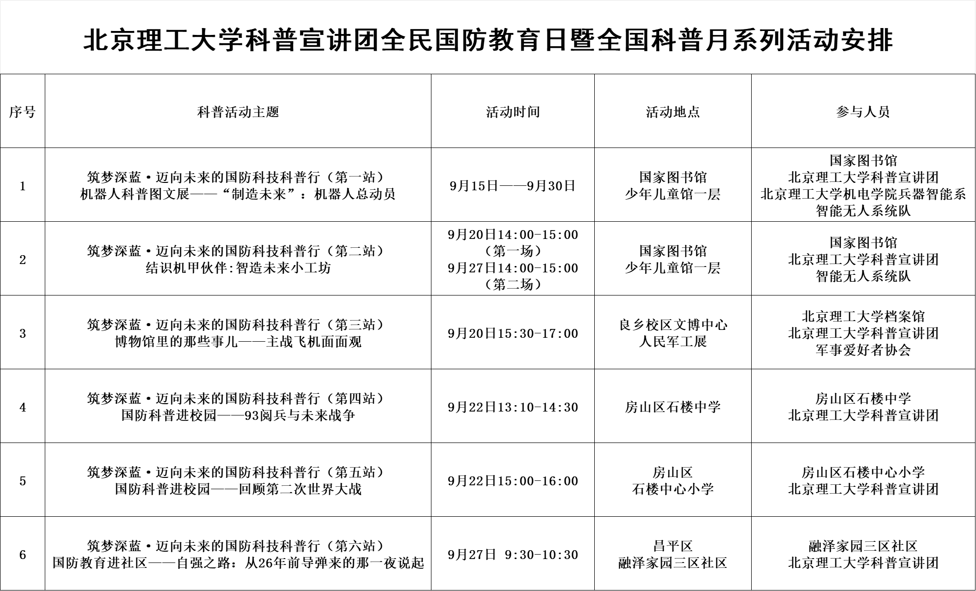 附表:太阳集团tcy8722科普宣讲团全民国防教育日暨全国科普月系列活动安排