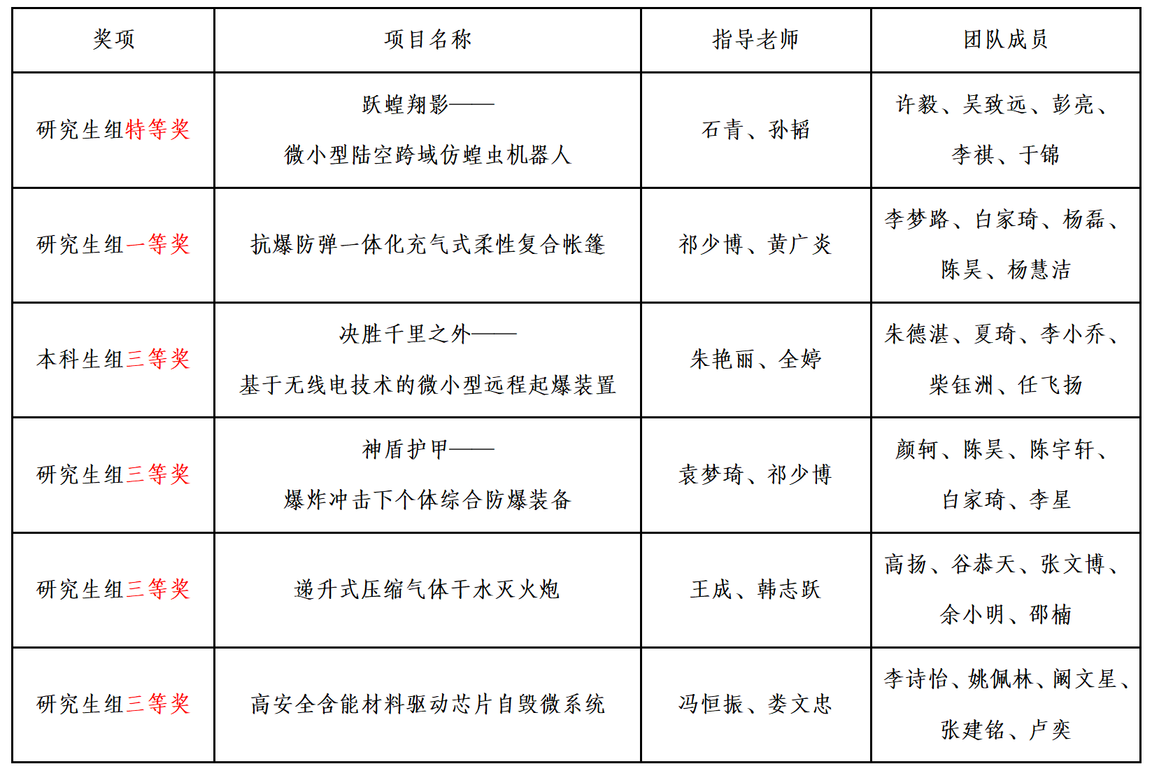 除此之外,太阳集团城娱8722其他获奖团队从防爆、引爆、防护、灭火、控制系统等多方面为国家特种装备贡献新点子、新方法、新成果,未来机电学子将继续砥砺前行,筑牢“延安根、军工魂”,为国家建设贡献青春力量!